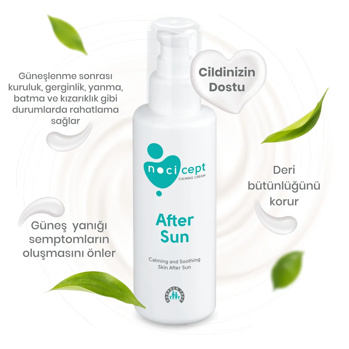 Güneşlendikten sonra cildin hızlı nemlenmesi ve rahatlaması için Nocicept After Sun kullanılabilir.